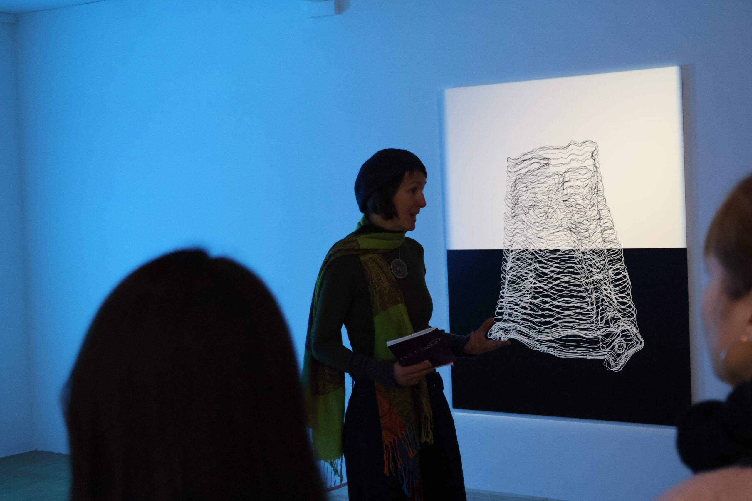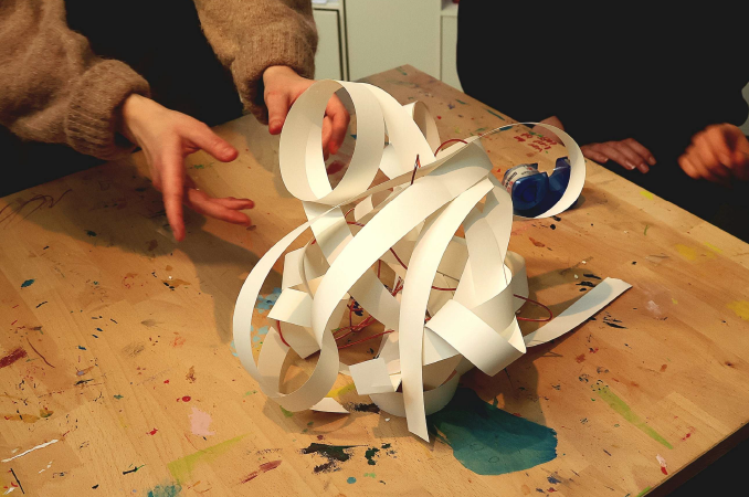Fußläufig gelangten wir schließlich zum Kunstmuseum, in dem wir freundlich empfangen wurden. Nach einer allgemeinen Einführung in die Kunst des Museums, in der wir unter anderem lernten, dass hier besonders die Lichtkunst eine starke Rolle spielt, wurden wir in zwei Gruppen eingeteilt. Während die eine Gruppe zuerst eine einstündige Führung durch das Museum bekam, durfte die andere Gruppe praktisch arbeiten und ihre eigenen Kunstwerke aus Papier und Draht erstellen. Hierbei entstanden in Anbetracht der geringen Zeit für diese Aufgabe, viele schöne und vor allem kreative Werke.