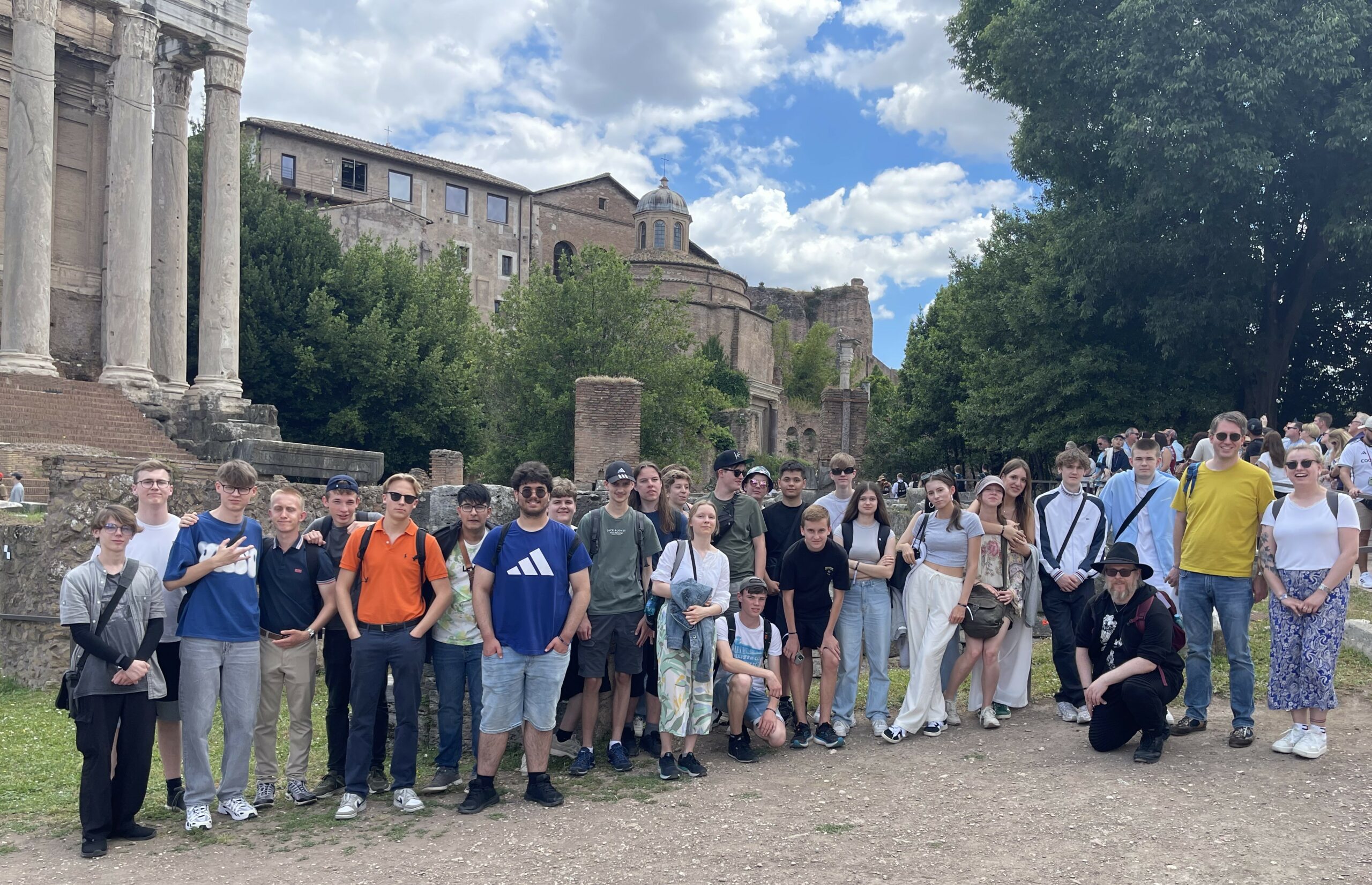 - Jahrgänge 6-9: Spracherwerbsphase mit dem modernen Lehrwerk Pontes als Grundlage – inhaltlich stehen dabei folgende umfassende Themenkomplexe im Vordergrund: Alltag im antiken Rom, römische Geschichte von den Anfängen bis zur Kaiserzeit, antiker Mythos und antike Philosophie, Latein zwischen Antike und Moderne, berühmte Persönlichkeiten der römischen Antike.