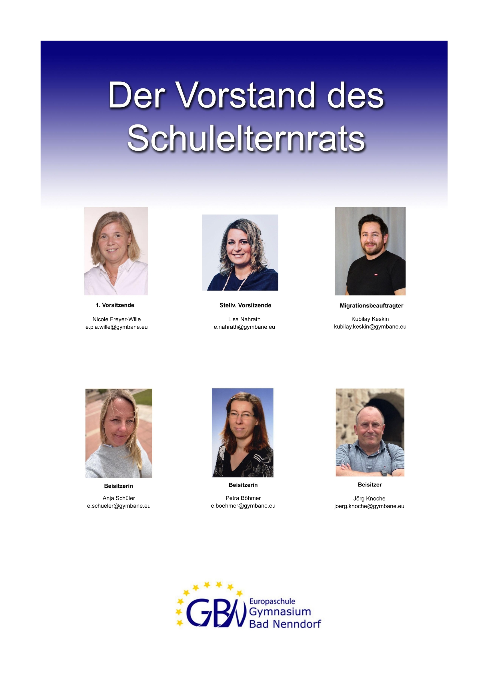 Der Schulelternrat will mit seiner Arbeit zu einem Schulklima beitragen, das effektives Lernen an einem Ort des lebendigen Miteinanders ermöglicht. Dieses Ziel versuchen wir auch nach außen hin zu repräsentieren. Um die Interessen der Eltern bestmöglich vertreten zu können, brauchen wir Vorschläge, Ideen, Kritik und Informationen. Wir freuen uns daher auf den Kontakt mit Ihnen oder noch besser Ihre Mitarbeit.